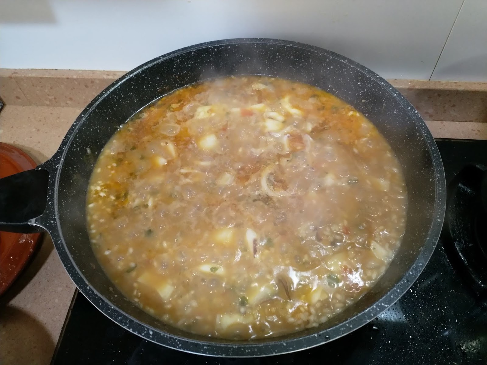 Ho deixarem uns 12 minuts a foc mitjà. quan quedi poc hi posem els musclos, les cloïsses i les gambes.